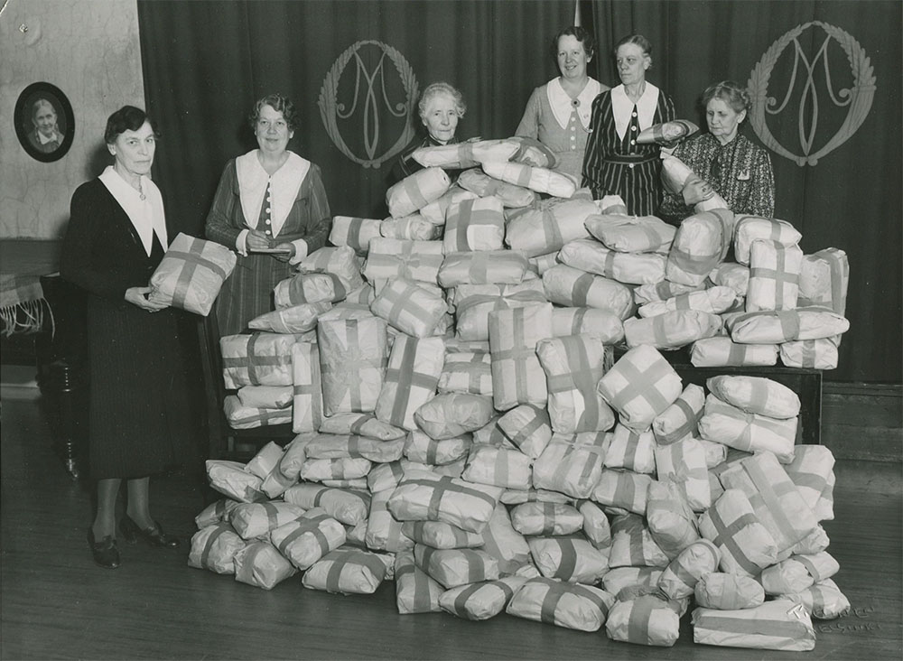 ”Väestöliiton kehotuksesta Helsingfors svenska Marthaförening käynnisti muiden naisjärjestöjen tapaan pellava- ja puuvillakankaiden keräyksen pääkaupungin kodeista. Keräys tuotti hyvän tuloksen, ja marttojen ahkerissa käsissä materiaali muuttui vauvan vaatteiksi äitiysavustukseen. Avustuspaketteja jaettiin kaupungin kaikkien neuvoloiden kautta. Vaatekappaleet järjestettiin paketteihin rouva Sigrid Jörgensenin johdolla. Kaiken kaikkiaan jaettiin noin 600 pakettia, jotka kaikki käärittiin kauniisti valkoiseen paperiin ja sidottiin sinisellä nauhalla niin, että pakkaus muistutti Suomen siniristilippua.”