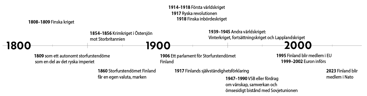 Vid övergången mellan 1800- och 1900-talet ville det ryska kejsardömet minska storfurstendömet Finlands privilegier. Rysslands agerande vid den tidpunkten kallas för ”en period av förtryck”. Mellan perioderna av förtryck fick dock storhertigdömet år 1906 en riksdag grundad på allmän rösträtt som ersatte lantdagen som byggde på ständer. Två revolutioner skedde i Ryssland 1917. I samband med höstens kommunistiska revolution och Rysslands omvandling till Sovjetunionen förklarade sig Finland självständigt den 6 december 1917. Finland kastades in i ett inbördeskrig mellan de ”röda” och de ”vita”, dvs. vänstern/kommunisterna/arbetarklassen och högern/kapitalisterna/ägarklassen, som slutade med att de vita segrade och Finland blev en republik. Efter inbördeskriget tog Finland itu med att förbättra arbetarklassens levnadsvillkor och främja jämlikhet.